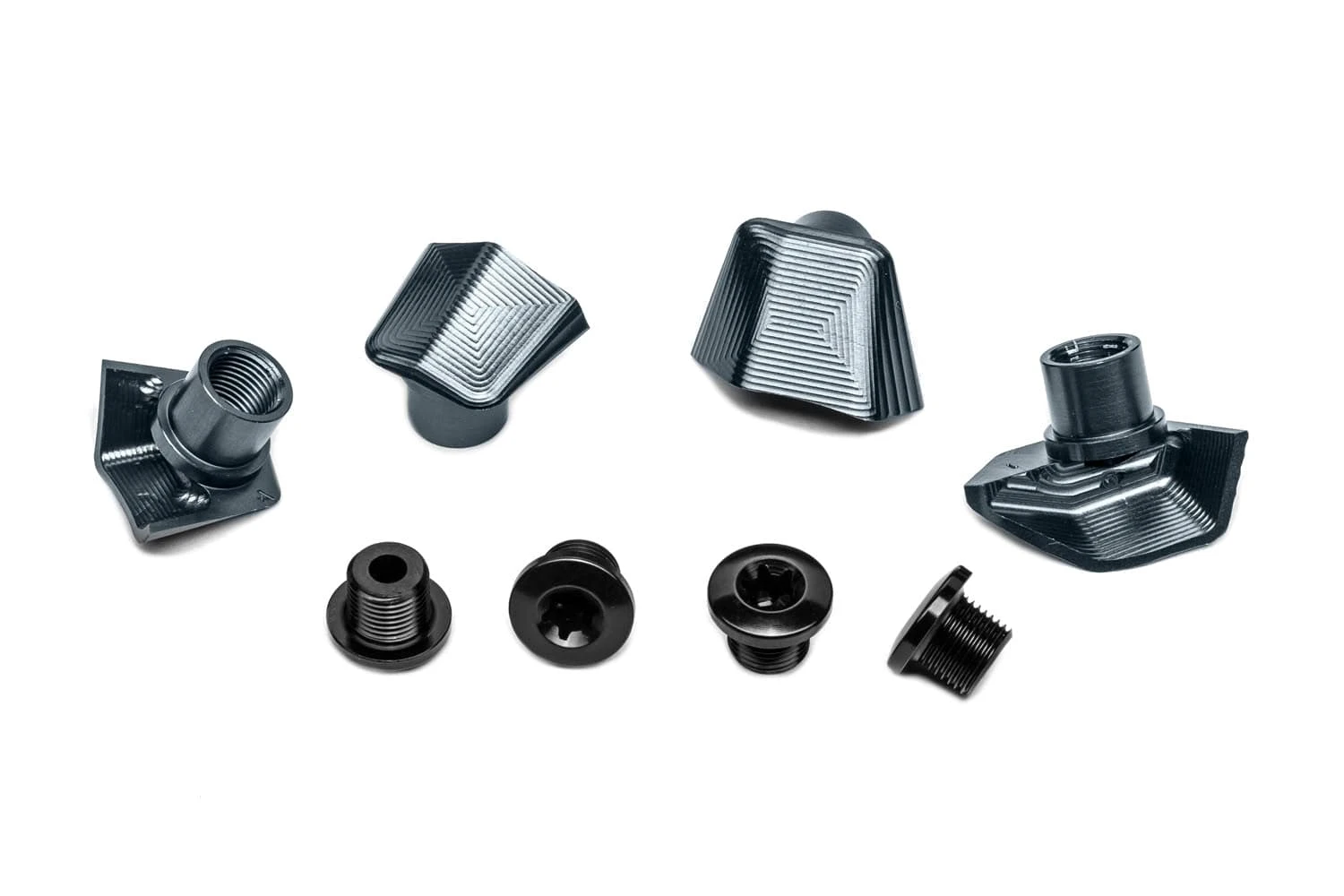 Simply put, these bolt covers for Ultegra and DuraAce cranks make your crank look even better with AbsoluteBlack or Rotor Oval chainrings. When you switch to Absoluteblack oval rings, you create a small step down at the connection point between crank arms and chainring bolt hole area.