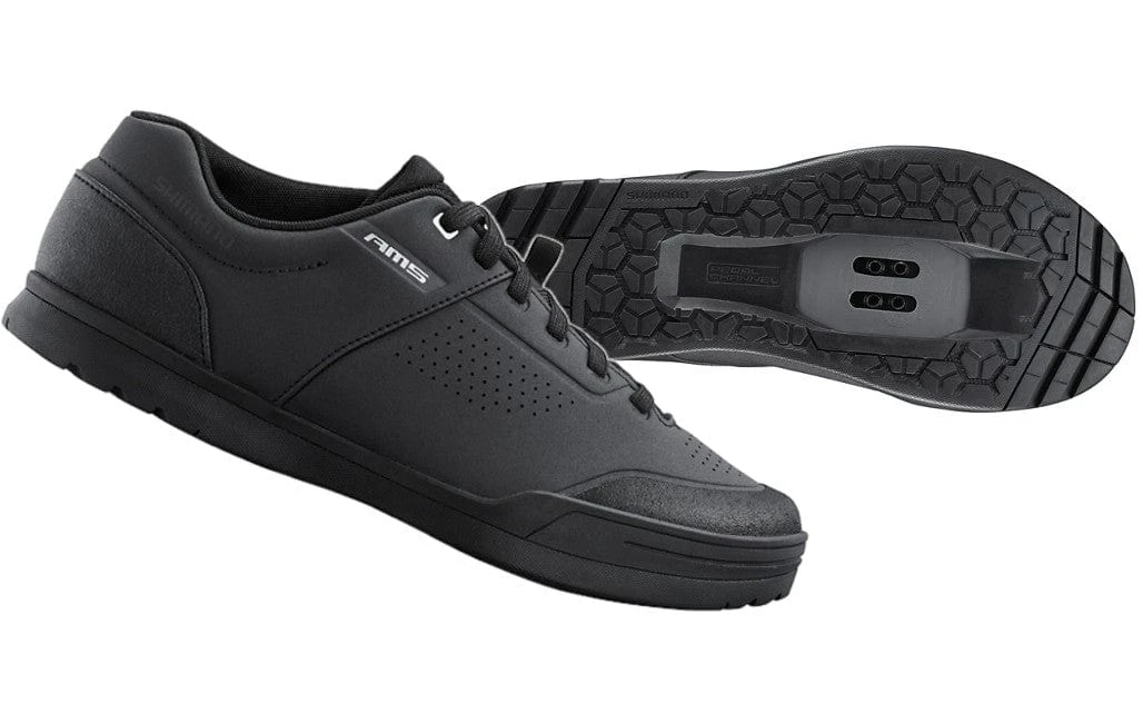 The Shimano AM503 MTB Shoes in Black are a versatile and stylish option for mountain biking enthusiasts. Designed to provide excellent performance and comfort on the trails, these shoes feature a durable synthetic leather upper that ensures a secure fit and protection from the elements. The reinforced rubber outsole offers excellent grip and traction on various terrains, making them suitable for both hike-a-bike sections and aggressive riding. With a classic black colorway, these shoes not only perform well but also look great, making them a perfect choice for any avid mountain biker seeking quality footwear.