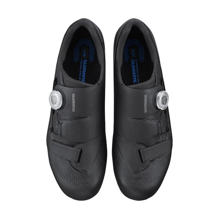 The RC502 shoes are lightweight performance shoes infused with Shimano’s S-Phyre DNA. Mesh/TPU and a synthetic leather material-covered upper in an optimized part of the shoe provides a comfortable lightweight fit. It is this surround wrapping upper structure which reduces overlap and the integrated seamless midsole and upper construction set a new level of fit, stability and lightweight performance. A low stack height carbon fibre reinforced nylon midsole stabilizes your foot while maximizing efficient power transfer. Adjustments using the BOA® L6 dial on the instep strap quickly and comfortably secures a wide range of foot shapes.